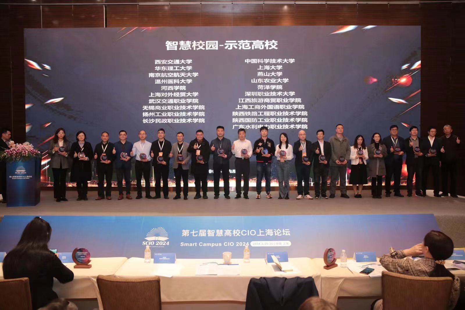 论坛期间,还举办了第七届智慧高校“凌云奖”评选活动。我校凭借在智慧校园建设领域的突出表现,荣获“智慧校园——示范高校”殊荣。同时,我校信息化建设管理服务中心副主任徐有芳获评“智慧高校数字化转型先锋人物”荣誉称号;教务处副处长樊斌获评“智慧教务数字化转型优秀人物”荣誉称号。