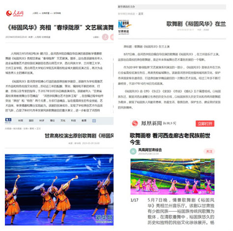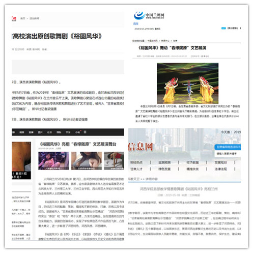 时逢建国七秩、百年五四这一奋进之年,9001cc金沙以诚为本首部教学情景歌舞剧《裕固风华》于5月7日晚亮相“春绿陇原”文艺展演舞台。人民网、新华网、光明网、凤凰网、中国新闻网、甘肃省人民政府网、中国青年报、中国旅游新闻网、甘肃日报、甘肃省教育厅、甘肃省文化和旅游厅网站、每日甘肃网、中国甘肃网、中国文化报、兰州晨报、兰州晚报等多家媒体聚焦镜头,竞相报道《裕固风华》演出盛况,赢得空前反响和社会各界高度赞誉。