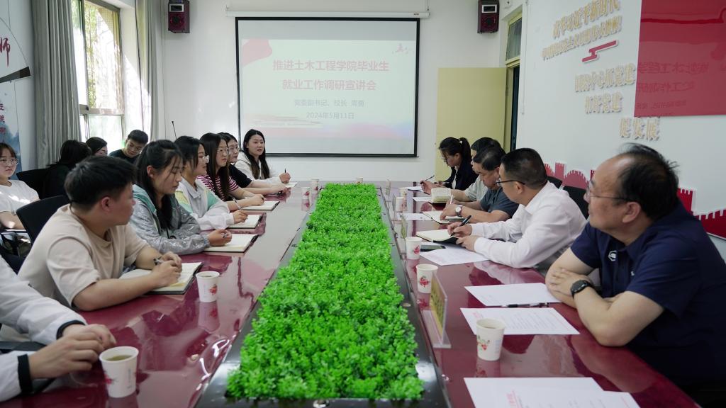为落实学校就业工作调度会精神,进一步推进土木工程学院做好毕业生就业工作。5月11日下午,党委副书记、校长周勇到土木工程学院开展调研宣讲。招生就业处负责人、土木工程学院班子成员、毕业班班主任、全体辅导员、未就业毕业生代表参加调研座谈。学院就业帮扶对象马克思主义学院负责人应邀参加。
