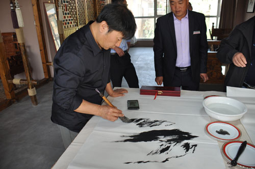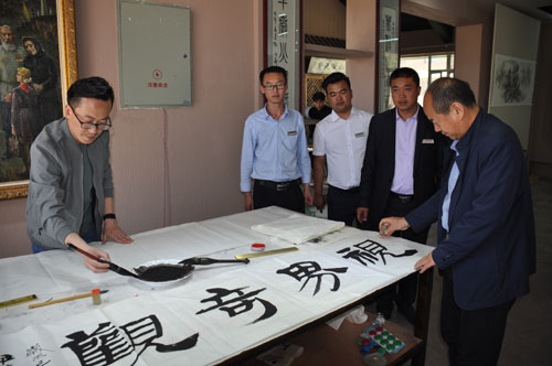 会后,周均发一行实地考察了公司的摄影、文创等基地建设情况;张掖市美协、书协的负责人当场书写、作画,给基地留下宝贵的书画作品。