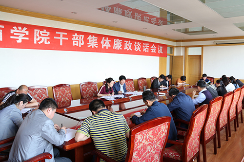 为深入贯彻落实全面从严治党要求,进一步增强领导干部廉洁自律意识和拒腐防变能力,5月27日下午,我校在行政楼四楼会议室召开集体廉政谈话会,党委常委、纪委书记马聪对2018年6月以来新提任的20余名处科级干部进行集体廉政谈话。会议由纪委副书记、监察室主任靳晓英主持。会上学习了《中国共产党纪律处分条例》部分章节,与会干部填写了廉政承诺书。