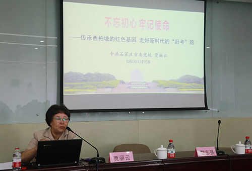 石家庄市委党校贾丽云教授作了题为《不忘初心 牢记使命---传承西柏坡红色基因 走好新时代“赶考”路》的专题报告。通过学习,学员们对共产党人在西柏坡的革命实践、西柏坡精神的思想内涵和传承西柏坡精神,走好新时代“赶考路”有了深刻的理解和思考。