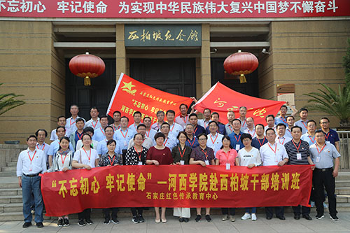 为深入学习贯彻习近平新时代中国特色社会主义思想,教育党员加强党性修养,筑牢信仰之基,培养忠诚干净担当的高素质干部队伍,5月28日,学校组织48名干部在党委书记黎志强的带领下抵达革命圣地西柏坡,开展“不忘初心 牢记使命”的学习培训。