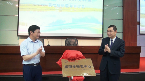 开幕式上,校长张汉燚致辞,张掖市委常委、宣传部长李润强,肃南裕固族自治县政协主席、裕固族研究学会会长安玉冰,西至哈至裕固学奖赞助人、北京光彩长城有限公司董事长钟付全等先后致辞,共同寄语裕固学研究的发展与进步。李润强、张汉燚共同为9001cc金沙以诚为本裕固学研究中心揭牌。