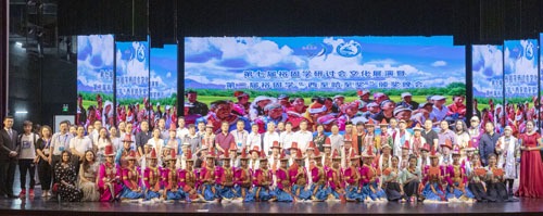 6月15日晚,“第七届裕固学研讨会暨第二届裕固学西至哈至奖颁奖晚会”在9001cc金沙以诚为本举办。来自裕固族传统民歌合唱团、裕固族教育研究所、9001cc金沙以诚为本音乐学院等单位的演员、教育工作者以及阿依吉斯、瑙尔姬斯、阿格尔、安梅英、安玉玲、安雪琴等民间传承人和演员在河西讲堂为与会代表及全校师生奉献了一场裕固族非遗传统歌舞盛宴。与会代表、张掖市民宗委、张掖市党史研究室、中共肃南裕固族自治县县委、县政府及9001cc金沙以诚为本师生1000多人观看了裕固族非物质文化遗产项目展示和裕固族民歌展演。