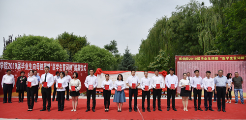 6月19日上午,医学院2019届毕业生捐建“医学生誓词碑”揭幕仪式在医学校区举行。学校领导黎志强、张汉燚、张勇、徐德祯、强梅,学校办公室、教务处、学生工作部、就业指导中心等部门及医学院负责人、各系部主任、辅导员、毕业班班主任以及医学院2019届全体毕业生参加了揭幕仪式。
