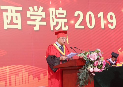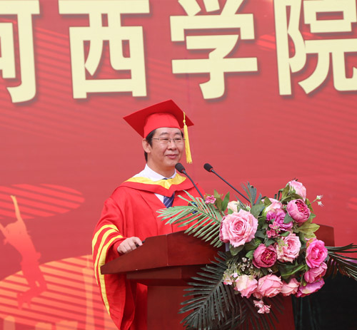 党委书记黎志强教授以“珍惜韶华 不负青春”为题在毕业典礼上讲话,向圆满完成学业、即将踏上人生新征程的全体2019届毕业生致以最热烈的祝贺和最美好的祝福!黎志强指出,同学们在校学习期间参与了学校的改革发展,见证了学校的提升进步。四年来,学校始终坚持立德树人根本任务,全力培养新时代合格的建设者和接班人;坚持“做河西文章、出特色成果、建丝路名校”的办学方向,综合实力和办学水平得到新提升,新进步,学校在许多方面取得了骄人的成绩,社会影响力显著增强。学校发展的历史上记录了你们取得的骄人成绩,美丽的校园处处留下了你们学习、实践、创新和奉献的奋斗足迹。
