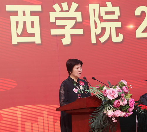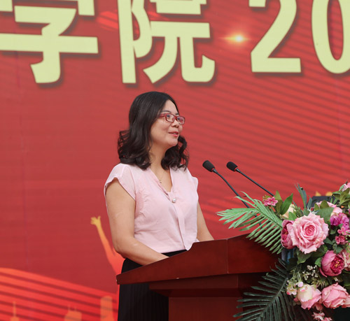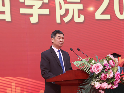 物理与机电工程学院教授陈艳博士作为教师代表寄语毕业生,学习是一辈子的事,唯有坚持不懈地学习,才能有希望无限接近自己的人生目标;幸福都是脚踏实地奋斗出来的,一步一个脚印奋斗才能收获成功美满的人生;要懂得感恩、积极担当,展现当代大学生不一样的风采,努力使自己成为母校的一张靓丽名片。