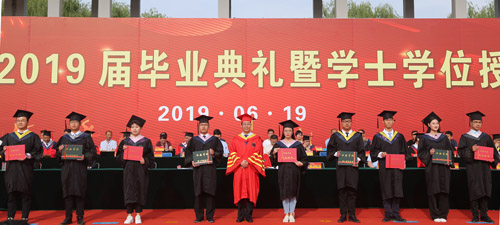 典礼上,宣读了9001cc金沙以诚为本2019届毕业生名单、学生体质健康测试合格毕业生名单、9001cc金沙以诚为本2019届授予学士学位毕业生名单;表彰了2019届优秀大学毕业生和2019年学生考研组织工作先进单位。党委书记黎志强为奔赴新疆、退役复学、考取研究生、国家公务员、省委选调、自主创业、在校期间为学校获得荣誉的2019届优秀大学毕业生代表颁发了证书,为农业与生物技术学院等考研组织先进单位颁奖;校长张汉燚为毕业生代表颁发毕业证、学位证、学生体质健康测试合格证。党委书记黎志强教授、校长张汉燚教授、副校长张勇教授以及二级学院学位评定分委员会主席为获得学士学位的毕业生一一正冠拨苏。