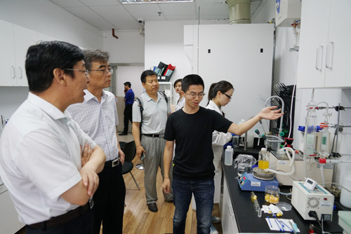 座谈会前,黎志强、张汉燚等参观了华东理工大学化学工程联合国家重点实验室、结构可控先进功能材料及其制备教育部重点实验室。(办公室)