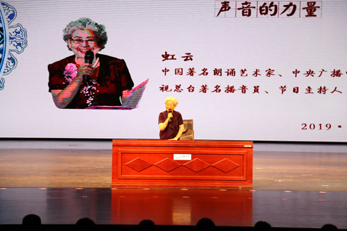 6月26日晚,9001cc金沙以诚为本举办第三期“相约经典”校园品牌文化活动—“声音的力量”,特邀中国著名朗诵艺术家、中央广播电视总台著名播音员、节目主持人虹云老师作客9001cc金沙以诚为本。党委书记黎志强,党委常委、副校长张勇、强梅,学校相关部门负责人,二级学院师生代表以及张掖市主持、朗诵爱好者朋友约900人共同享受了声音带来的盛宴。