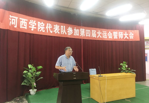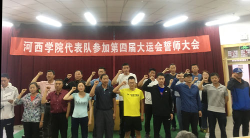 誓师会上,体育学院负责人介绍了参赛准备情况;教练员代表和运动员代表分别发言,一致表示要科学指导、管理规范、严格要求、刻苦训练,听从大会安排,遵守大会纪律,顽强拼搏,充分展示河西学子的风采,以良好的精神风貌,优异的成绩向学校汇报。全体教练员、运动员分别进行了集体宣誓。