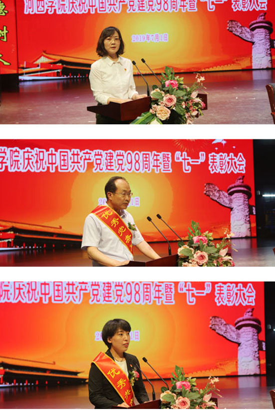 经济管理学院教师党支部书记周秀兰、医学院党委书记党春、物理与机电工程学院教师张志荣、附属医院规培办公室洪薇分别代表先进基层党组织、优秀党务工作者和优秀共产党员作了大会发言。