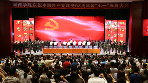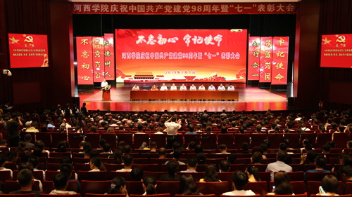7月1日下午,学校在河西讲堂召开庆祝中国共产党成立98周年暨“七一”表彰大会,对近年来在学校党的建设和教学、科研、管理、服务工作中涌现出来的先进基层党组织、优秀党务工作者、优秀共产党员进行表彰。党委书记黎志强,校长张汉燚、党委副书记王兵、副校长周均发、张勇、徐德祯、强梅、顾长兆,党委常委高荣、赵柱、王德出席大会,全体教工党员和学生党员代表、离退休党员代表共计800余人参加会议。党委副书记王兵主持大会。