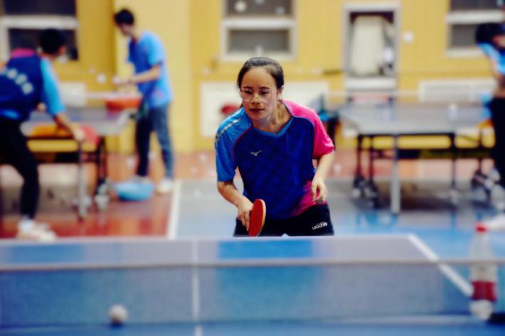 走进训练馆,传入耳中的不仅有乒乓球与球桌的撞击声,还有运动员脚底与地面的摩擦声,以及运动员平稳地呼吸声。看,首先映入眼帘的是单打组,随着白球在空中划过,运动员如脚底生风一般快速移动,长臂一挥,白球准确的落到了对方的打球面,让对手猝不及防。