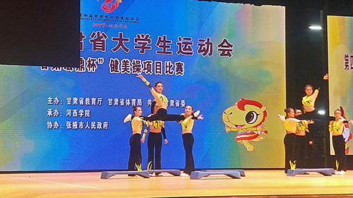 第四届甘肃省大学生运动会健美操比赛于7月15日上午9:00在河西讲堂正式开赛。上午的比赛分为两个赛段进行,比赛的项目有甲组女子单人操预赛,乙组男子单人操预决赛,甲组有氧踏板规定套路预赛。