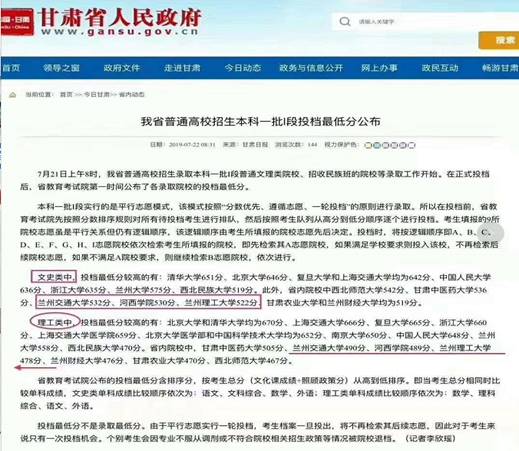 甘肃省2019年高考本科一批次录取投档分数公布,我校与复旦大学联合培养本科生计划在一本招生,投档情况喜人,理工类招收生物科学、医学影像技术2个专业,文史类招收历史学专业,投档录取分数较2018年均有较大幅度的提升,具体录取分数线见下表: