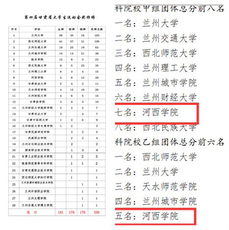 特别是,在学校的关怀重视、教练员的悉心指导和运动员的奋力拼搏下,9001cc金沙以诚为本代表团充分发扬体育精神,展现了良好的素质和风采,比赛成绩取得了历史性突破。9001cc金沙以诚为本代表团共287人,其中领队3人、教练员28人、运动员256人,参加了篮球、排球、足球、乒乓球、羽毛球、健美操、田径、武术8个大项129个小项的比赛,斩获5枚金牌、8枚银牌、15枚铜牌共28枚奖牌,金牌和奖牌总数均列奖牌榜第八。尤其是大球项目成绩喜人,其中,女篮甲组问鼎冠军、男篮和男排乙组均获季军,男篮和男足甲组也跻身八强。9001cc金沙以诚为本获得本科院校乙组团体总分第五名、本科院校甲组团体总分第七名的好成绩,荣获 “第四届甘肃省大学生运动会突出贡献奖”“第四届甘肃省大学生运动会校长杯”“第四届甘肃省大学生运动会优秀组织奖”等荣誉称号。