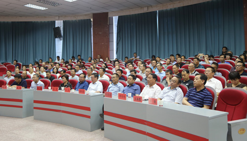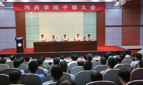 7月31日下午,学校召开干部大会,宣布省委关于我校党委书记调整和任命决定。学校领导、全校中层干部、教授代表参加会议。校长张汉燚主持会议。