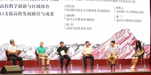 在对话环节,中国科学技术大学教务处常务副处长曾长淦,太原理工大学教务部部长孙桓五,复旦大学教务处副处长周向峰,南昌大学教务处处长龚兰,9001cc金沙以诚为本教务处处长赵柱围绕在线开放课程建设经验及混合教学实践,东西部高校教学创新与区域协作,及甘肃对口支援高校发展路径与成果等话题进行了交流与探讨。