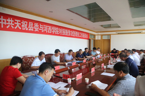 8月26日,天祝县委副书记陈德义、杨德江一行来校对接脱贫攻坚帮扶工作,对接座谈会在办公楼四楼会议室召开。党委常委、组织部部长高荣主持座谈会并介绍了近年来我校帮扶工作情况,天祝县扶贫办主任、朵什镇党委书记分别介绍了天祝县和朵什镇脱贫攻坚情况。我校挂职干部天祝县委副书记杨德江同志结合近期帮扶工作作了交流发言。