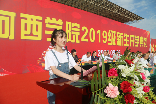 信息技术与传媒学院广播电视学191班周梓荧同学代表全体2019级新生发言,表示将牢记老师教诲,亲人嘱托,尽快适应新的大学生活,树立远大的奋斗目标,团结友爱,互帮互助,踏实、勤奋学习,培养高尚的思想情操,争做品学兼优的大学生,以青春自我、奋斗之我,为祖国建设添砖加瓦。