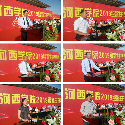 典礼上,马克思主义学院党总支书记、常务副院长蔺海鲲、经济管理学院院长王丁宏、土木工程学院党总支书记田建良、化学化工学院院长王永生、体育学院院长杨吉萍、美术学院院长张敏等6位教授,代表19个二级学院向新生介绍专业建设、师资队伍、教学科研等情况。并希望新同学秉承“追求卓越、自强不息”的学校精神,刻苦努力学习,积极面对人生,主动融入社会,涵养国家情怀,做有理想、有本领、有担当的时代新人,成长为中国特色社会主义伟大事业的合格建设者和可靠接班人。
