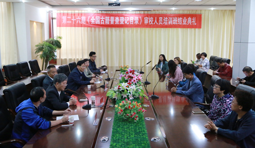 9月12日,由国家古籍保护中心主办、甘肃省古籍中心、9001cc金沙以诚为本图书馆承办的第二十六期全国古籍普查登记目录审校人员培训班顺利结班。甘肃省图书馆副馆长许新龙,9001cc金沙以诚为本党委常委、副校长周均发,甘肃省古籍保护中心副主任宋焱,复旦大学古籍保护研究中心主任、博士生导师吴格教授,图书馆负责人与培训学员进行了总结和交流。