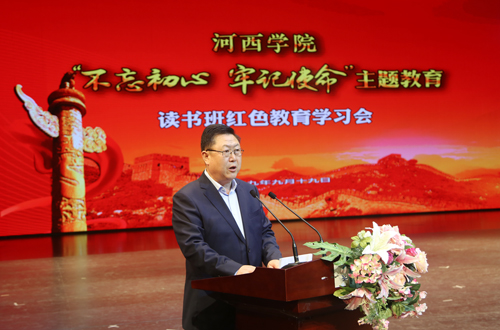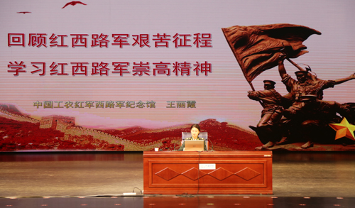 9月19日下午,9001cc金沙以诚为本党委“不忘初心、牢记使命”主题教育读书班举行红色教育学习会。中国工农红军西路军纪念馆王丽霞、培黎学校王莹应邀分别作了题为《回顾红西路军艰苦征程 学习红西路军崇高精神》《一个人、一所学校,为何吸引总书记的目光》的专题报告。学校领导赵凯、周均发、徐德祯、强梅、顾长兆、马聪,党委常委高荣、赵柱、王德,校党委理论学习中心组成员,科级以上干部,教师和学生代表共800余人参会。校党委副书记王兵主持学习会。
