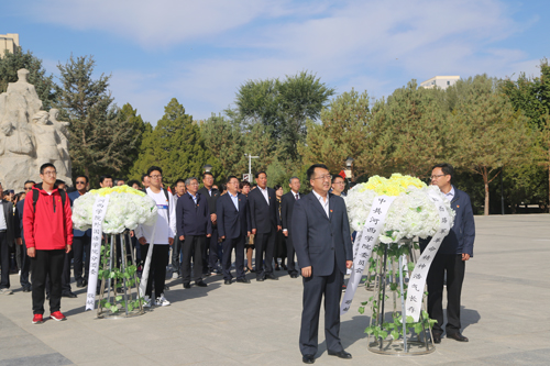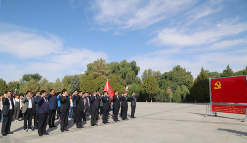 在纪念碑前,全体学员肃立默哀,敬献花篮,向英勇牺牲的西路军烈士致敬,深切缅怀西路军将士为民族解放事业不怕牺牲、英勇奋斗的革命事迹。在党委书记赵凯带领下,面对鲜艳的中国共产党党旗,全体学员重温了入党誓词。