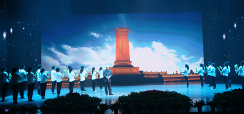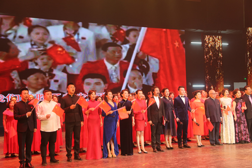 朗诵会在全场观众合唱《歌唱祖国》中结束,现场观众全体起立,和舞台上朗诵艺术家们一起手舞国旗齐声合唱,为新中国成立70周年引吭高歌,用歌声表达对祖国的热爱。(宣传部)