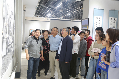 开幕仪式结束后,学校领导、各部门、二级学院负责人及学生代表、作品作者观看了展览。(工会)