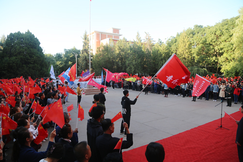 学生代表雷聪雅做国旗下演讲,表达了新时代大学生应以热爱祖国为立身之本、成才之基,传承红色基因、涵养爱国之情、砥砺报国之志、实践报国之行,争做时代新人的青春誓言。