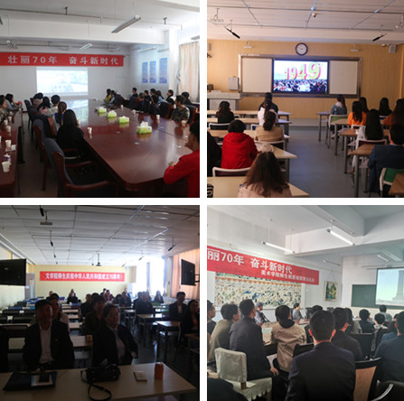 党委常委、学校办公室主任王德谈到,70年沧桑巨变,祖国山河日新月异、翻天覆地,得益于我们党怀着“为中国人民谋幸福、为中华民族谋复兴”的初心使命,以人民对美好生活的向往作为奋斗目标,一代代共产党人和全国人民接续奋斗,使伟大祖国从站起来、富起来到强起来,巍然屹立于世界的东方。乘风破浪正当时,建功立业新时代。作为一名高校管理者,一定不忘为党育人、为国育才的初心,一定不忘立德树人、培根铸魂的神圣使命,胸怀祖国,心系师生,学习理论武装头脑,立足岗位尽己所能,增强“四个意识”、坚定“四个自信”、做到“两个维护”,以主人翁的主动作为,自觉融入社会变革进步的时代洪流,自觉融入学校改革发展的教育实践,无愧于师生,无愧于时代!