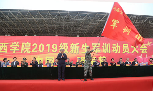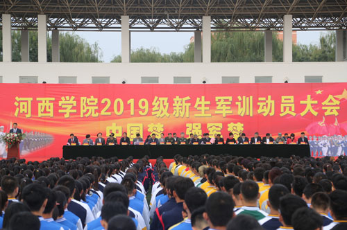 10月8日,学校2019级新生军训动员大会在校本部塑胶操场举行。国防大学纪明葵少将、刘晋豫少将,学校领导赵凯、张汉燚、王兵、周均发、强梅、顾长兆、马聪;张掖军分区文同春上校,党委常委高荣、赵柱、王德,甘州区人民武装部宋佳东中校,二级学院、相关职能部门负责人、辅导员、班主任、承训教官及5000多名同学参加动员大会。大会由党委常委、副校长徐德祯主持。