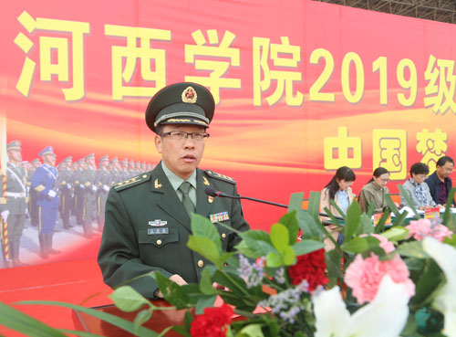 承训单位张掖军分区党委常委、战备建设处处长文同春上校在发言中要求全体教官高度负责、以忘我的工作态度,文明施训,科学组训、正规管训,高标准完成训练任务;希望同学们严格训练、勇于磨炼,提升国防意识、军事素养,培养爱国主义精神。