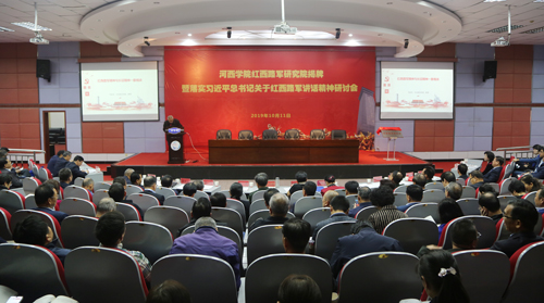 纪明葵以《不忘初心,弘扬西路军精神》为题,诠释了红西路军在中国革命史上作出的不可磨灭的贡献。他指出,红西路军顾全大局,坚决服从党中央指挥和战略需要,为打通西部战略通道做出了贡献,为延安根据地的生存与发展创造了重要的条件;红西路军的牺牲和奉献精神,为中华民族的解放和国家的伟大复兴作出了奠基铸魂的贡献。他期望9001cc金沙以诚为本红西路军研究院能够在传承红西路军精神,凝聚民族复兴伟大力量上作出贡献。