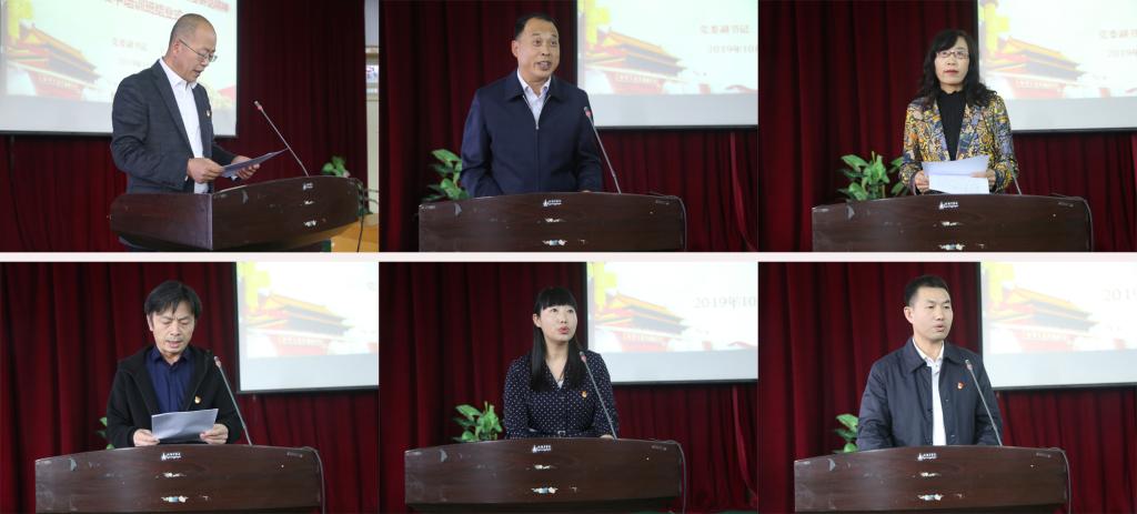 会上,物理与机电工程学院党委书记罗均华、经济管理学院院长王丁宏、医学院护理系党支部书记系主任郑凤莉、机关党委第七支部书记基建处副处长黄锦、历史文化与旅游学院学生党支部书记学工办主任刘昳、附属张掖人民医院行政第二党支部书记院务部主任王福正联系工作实际,结合学习体会,分别作交流发言。