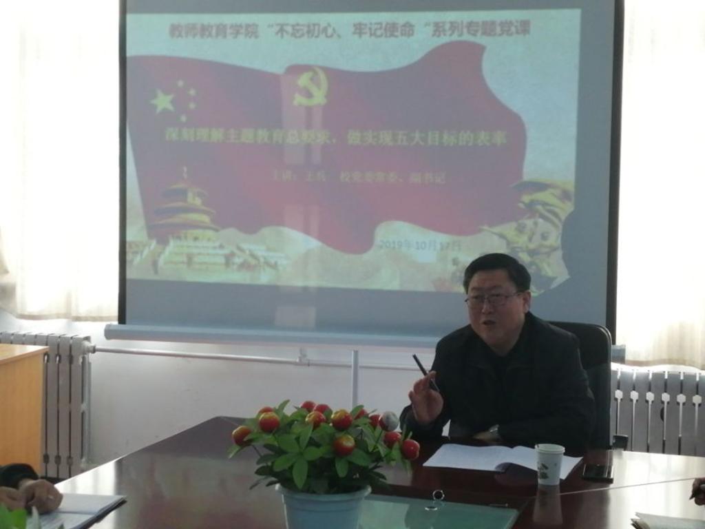 王兵以《深刻理解主题教育总要求,做实现五大目标的表率》为题,从准确把握主题教育目标任务的重大意义和深刻内涵入手,对学思践悟“守初心”、紧抓重点“明初心”两方面作了深刻阐释,对“守初心”“担使命”“找差距”“抓落实”“12字”总要求作了系统解读,引导党员、干部深刻理解和准确把握主题教育的总要求,深入学习贯彻习近平新时代中国特色社会主义思想 ,推动主题教育往深里走、往实里走、往心里走。