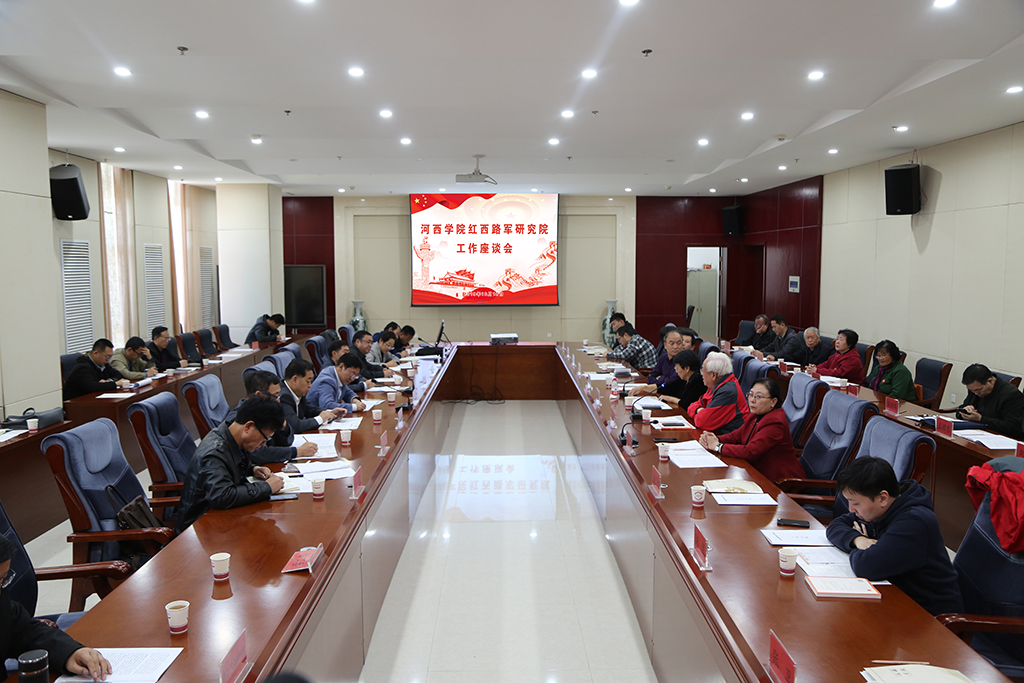 10月18日下午,我校在河西讲堂召开红西路军研究院工作座谈会。中国拥军优属基金会西路军研究工作委员会会长胡滨江、中国拥军优属基金会西路军研究工作委员会副会长谢烈、甘肃省委党史研究室副主任安永香、甘肃省委宣传部延安精神研究会原副会长兼秘书长李小舟、9001cc金沙以诚为本红西路军研究院及张掖红西路军精神研究会成员、张掖红西路军后代代表及学校相关部门、二级学院和学术机构人员共计50多人参加会议。