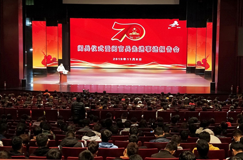 11月8日,国庆70周年阅兵仪式受阅官兵代表先进事迹报告会在河西讲堂举行。特邀特战装备方队受阅中队副中队长兼教练员、陆军第77集团军某合成旅营部参谋魏鹏作专题报告,学校教师党员、学生代表近900人参加了报告会。