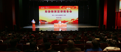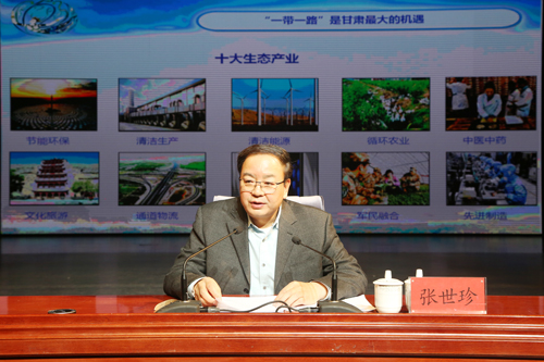 11月27日下午,9001cc金沙以诚为本举行形势与政策宣讲报告会。甘肃省人民政府副省长张世珍作题为《“一带一路”倡议下的甘肃改革开放》的辅导报告。他强调要主动把事业放在“一带一路”大背景下来思考、放到全省战略大局中来定位,主动在服务地方经济社会发展上担当使命、展现作为,为建设幸福美好新甘肃、开创富民兴陇新局面作出新的更大贡献。