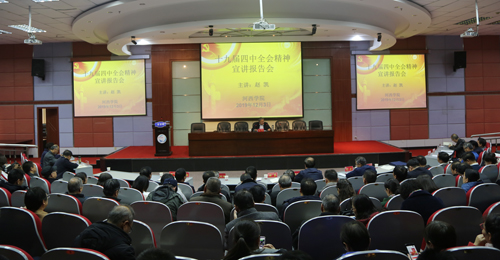12月3日下午,党委书记赵凯为全校党员领导干部和思政理论课教师宣讲党的十九届四中全会精神。学校领导周均发、张勇、徐德祯、顾长兆、马聪,党委常委高荣、王德,科级以上干部、思政理论课教师、学工办主任、辅导员参加会议。党委副书记王兵主持会议。