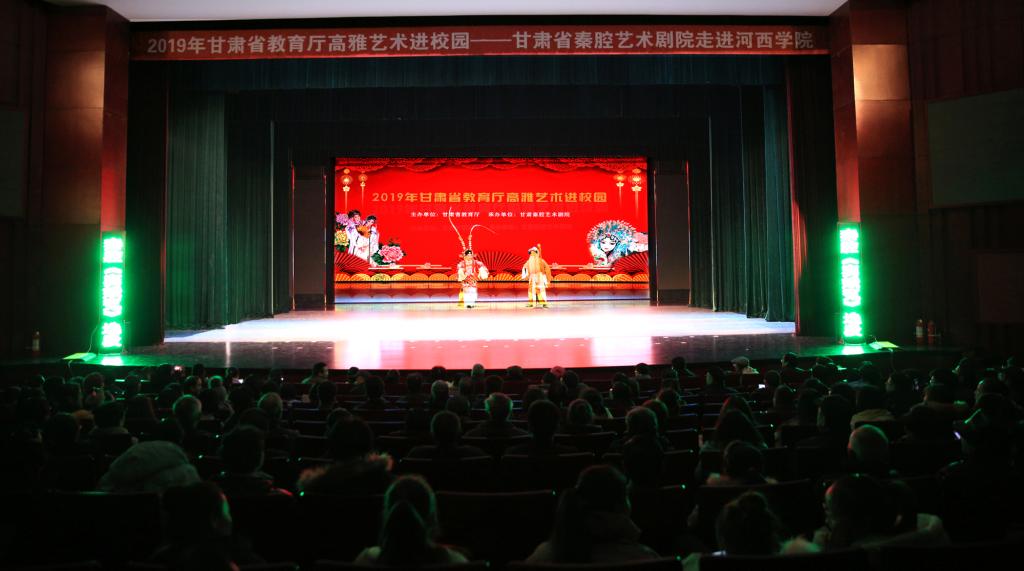 12月26日晚,“2019年甘肃省教育厅高雅艺术进校园——甘肃省秦腔艺术剧院走进9001cc金沙以诚为本”活动在河西讲堂举办。校长张汉燚及900余名师生和社会各界人士观看了演出。