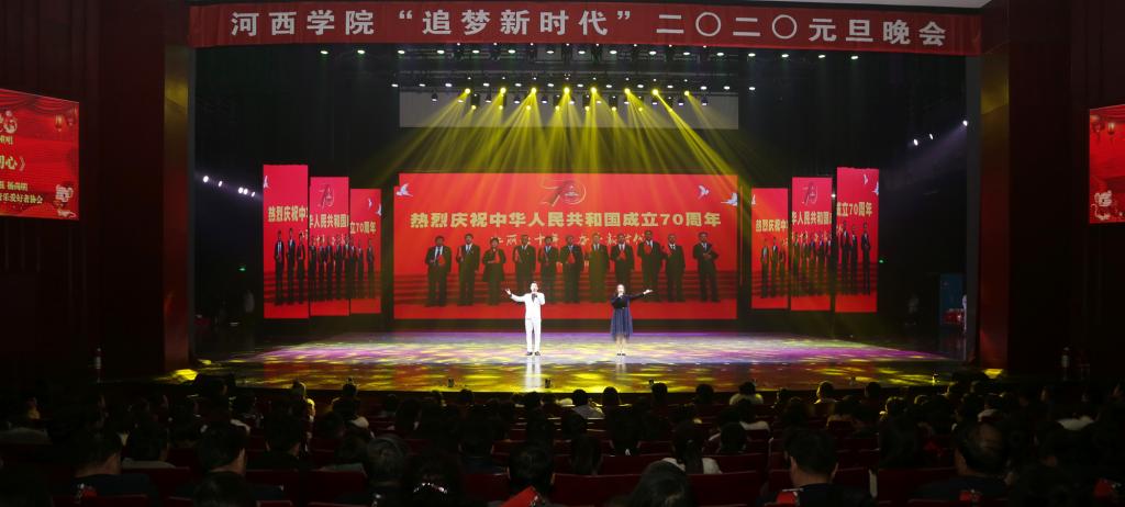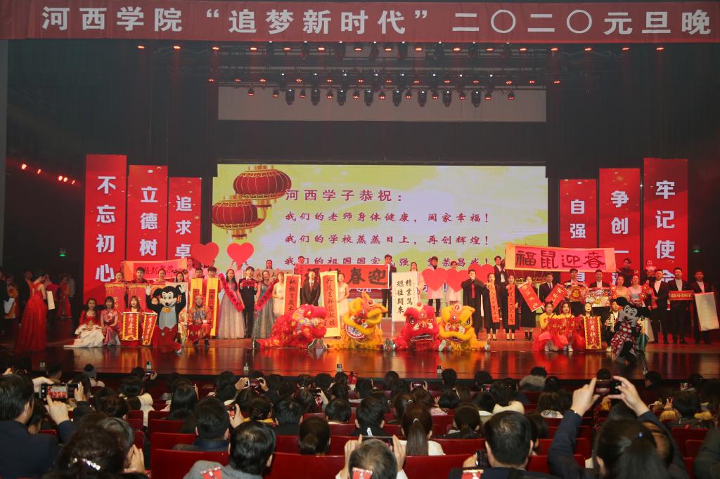 2019年12月31日晚,我校在河西讲堂举办“追梦新时代”2020年元旦晚会。学校领导赵凯、张汉燚、王兵、张勇、顾长兆、马聪,党委常委赵柱、王德和师生代表共计5000余人通过现场和线上直播观看了演出。