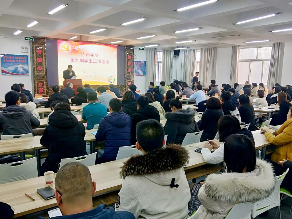 1月12日,我院第九期学生工作论坛在学生发展中心举办。党委书记赵凯,党委常委、副校长徐德祯,党委常委、教师工作部部长赵柱,学生工作委员会成员单位负责人,二级学院党总支(分党委)负责人,学生工作部、团委、就业指导中心工作人员,学工办主任、辅导员100多人参加了论坛。论坛由学生工作部负责人主持。