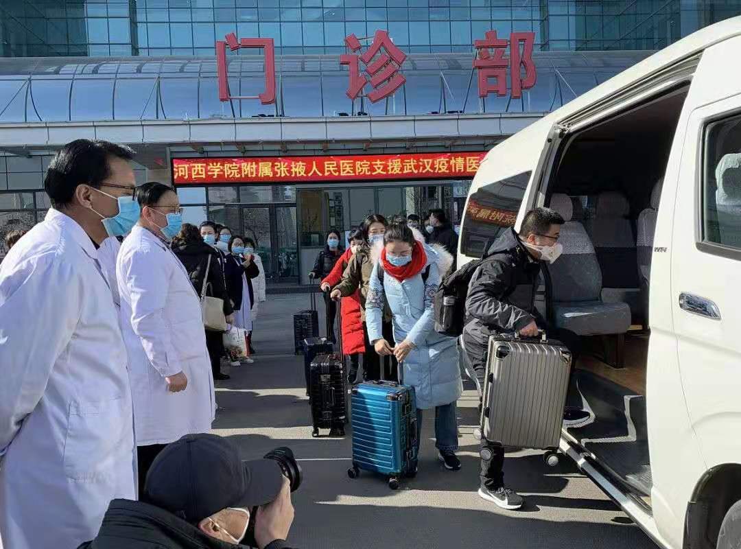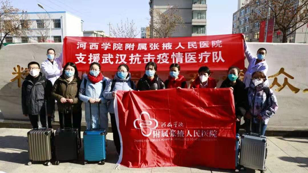 1月27日,按甘肃省卫生健康委安排部署,9001cc金沙以诚为本附属张掖人民医院派出9名医护人员驰援湖北新型冠状病毒感染的肺炎防治一线。队员包括2名医生与7名护士,中午13时30分,附属医院为全体医疗队员举办了简短而隆重的出征仪式。