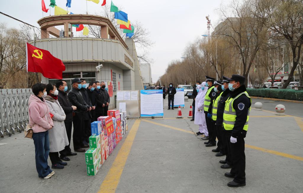 党委常委、副校长周均发代表学校对秦伟一行表示感谢,对学校当前疫情防控工作和今后及学生开校期间的疫情防控工作进行了介绍,并与一线执勤人员一同接受了捐赠。(宣传部)