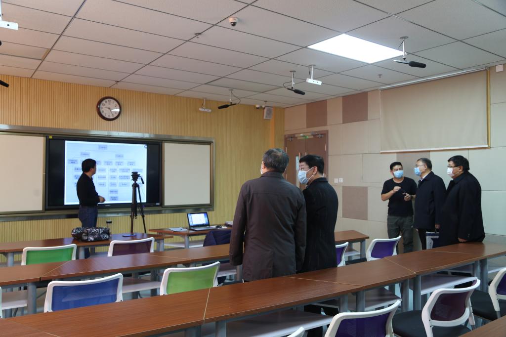在教师教学发展中心,6名教师根据教务处的安排,正在进行网上授课。校领导详细询问网上开课的人数、课程以及效果,要求教务处按照教育部和教育厅的安排,落实“停课不停学,停课不停教”的要求,改革教学方式,努力提高教育教学质量。信息技术中心要加强网络建设,搭建智能平台,确保信息畅通,深入推进信息技术与教学、管理、服务工作的深度融合。