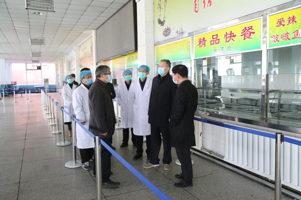 3月2日上午,党委书记赵凯、校长张汉燚、副校长张勇在相关部门负责人陪同下,检查开学前有关准备情况和防疫工作。